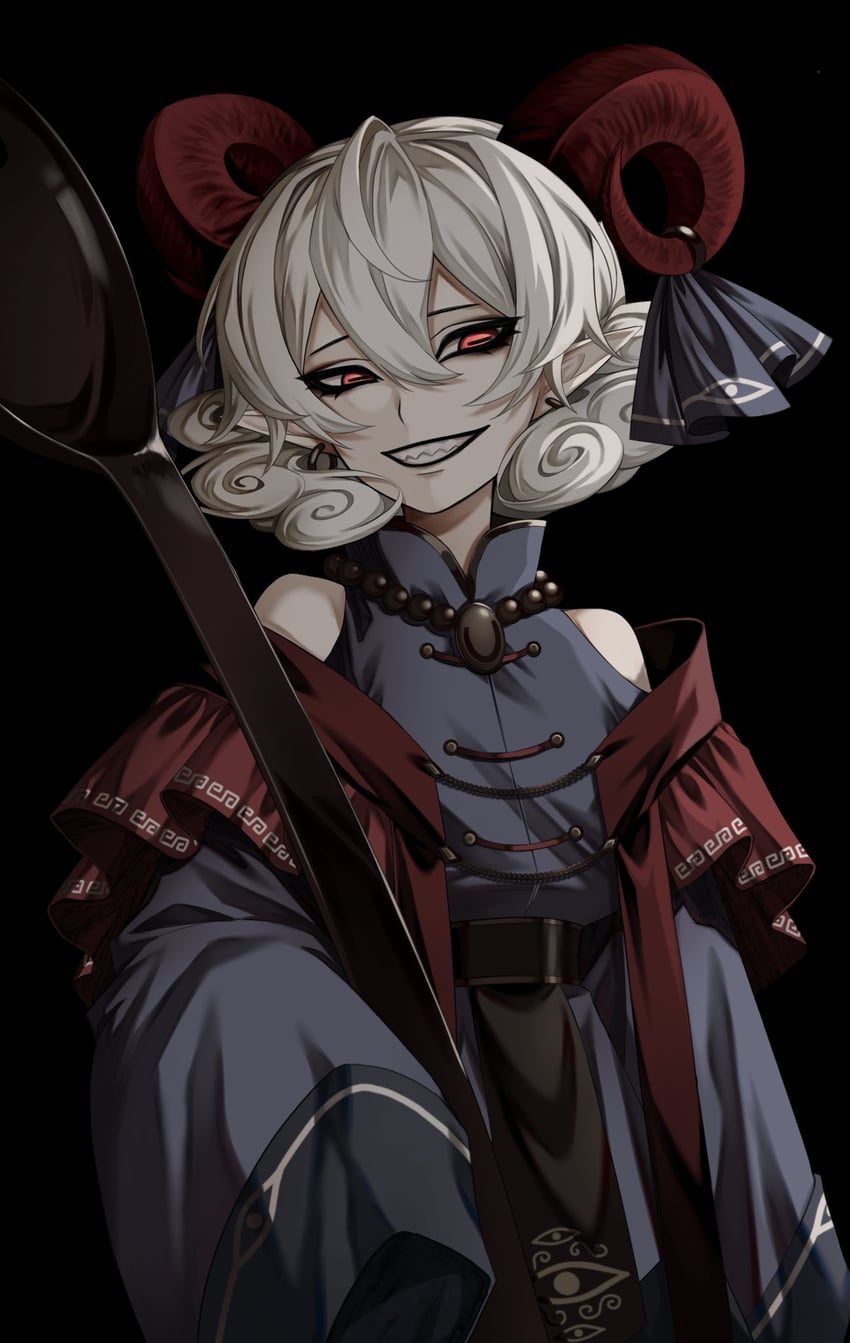 Ran gave her a half frown, still in the middle of licking her index finger clean. Yuuma Toutetsu – for that was the name that came to the forefront of my mind – sat across from her, eyebrow raised. Pale hair with crimson horns marked the woman as a taotie, a youkai of gluttony. When she smiled, a row of sharp teeth beckoned like a line of daggers.