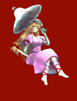The blonde woman urges you on with a wave of her fan. The three... gaps behind you shimmer with a phantasmagoria of color. She grins, her mouth soon covered by the open fan. You stare at her, not quite able to come to grips with all that's happened in the last hour or so. This definitely is the last time you'll ever help a lost stranger to her destination. Before you knew it you were falling and then you were here.