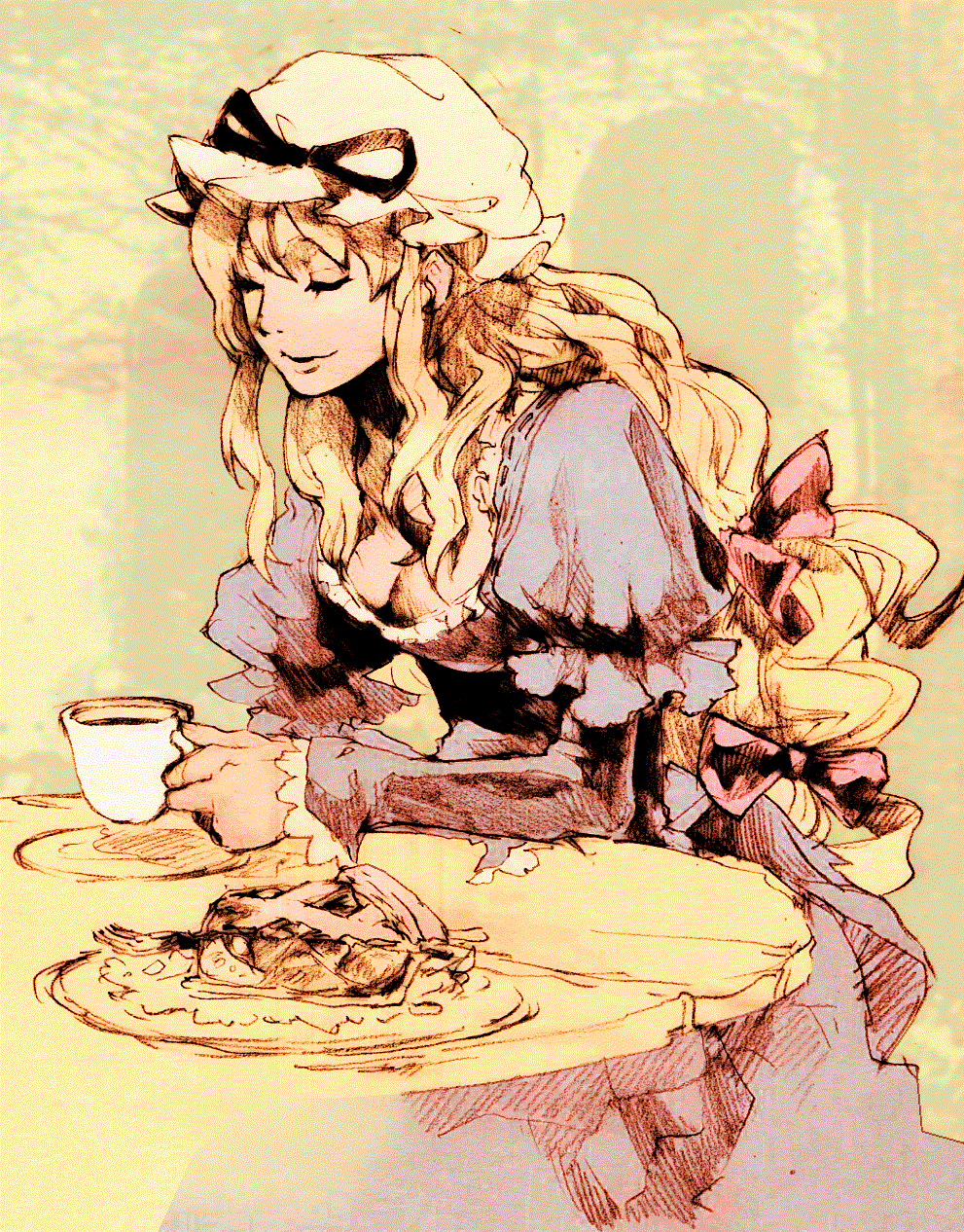 With your newfound freshly cleaned funds, you set off to do what really should've happened last update, before that darkness youkai finds you and bothers you some more. You can tell that you know her, but you can't even remember her name. And you'll most certainly not ask her, oh no! What would it say about you to admit that you'd forgotten something so basic? Why, they'd be able to discern your problem immediately. Your pride, the grand pride you hold as a youkai even in such a state, would be shattered utterly and instantaneously in the blink of an eye! Oh, the deepness of the despair you would wallow in would surpass all the oceans combined! Oh hey singing.