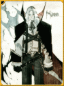 Recovering from the recoil of Momiji's attack, Doppelganger can only manage to lock blades with her instead of give a proper counterattack. This will be all the advantage you need. As the dark wave dissipates, you stick your sword straight ahead, pointed directly toward Doppelganger's skull. Just before you make impact, however, he parries your blow, preferring to take another crippling blow rather than a fatal one. You planned for this to happen though. You drop your sword and release the hidden blades. He has no time to react as you jam the blades into either side of his head, feeling them meet in the center. He falls to the ground once you remove them, where you pin him with his own sword. He soon fades away, leaving only his sword and a card. You give the former to someone who can actually use it, and use the card on your Devil's Nail.
