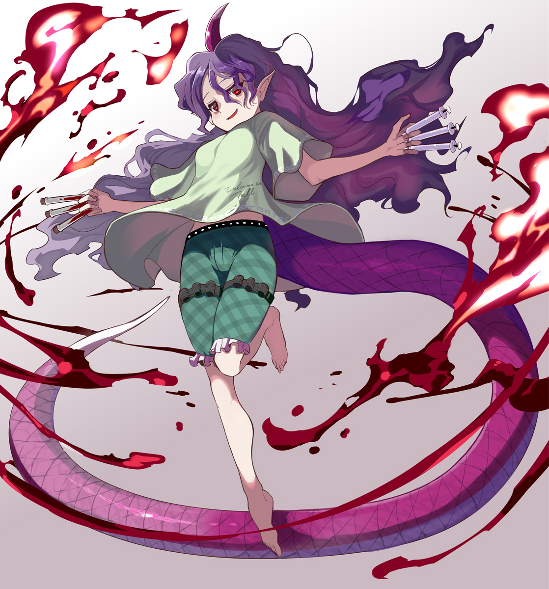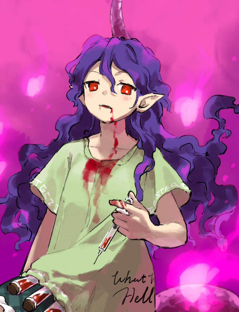 Her species seems to be a little unclear to some, even though it's in her name. She's an obscure type of creature with an affinity for blood. What do you think tenkajins are like? Some people seem to think she's a one-of-a-kind youkai, but do you? And what do you think of her possible affiliation with the Gouyoku Alliance? Just what kind of person does that make her?
