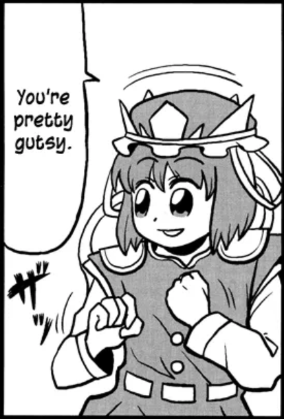 The one time I've seen this in fanfic, Eiki was treated as an annoying short joke, and the big shots all held their mouths just because of her position. I've never seen an Eiki depicted in fanworks that does her any justice. For fuck's sake, she's supposed to be the judge of the dead, not a useless nagging bureaucrat.