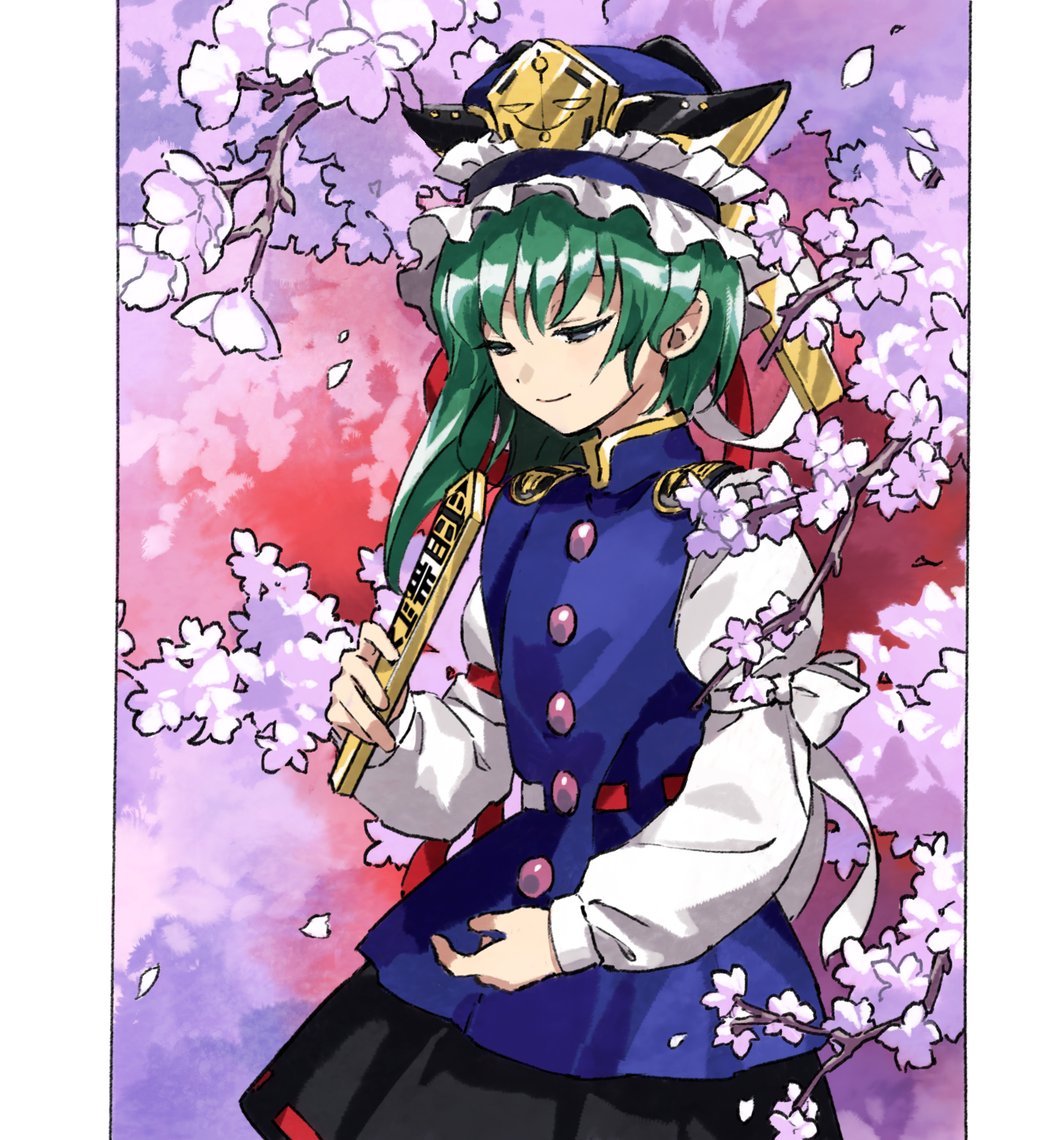 Although in contrast to Kasen, Eiki isn't a sexhu while also having a job the keeps her busy like Shou, in fact as the Yama of Gensokyo she's way more important, basically being the boss of Satori, Yuyuko, and Zanmu as well as the overseer of Gensokyo's hell. All apart of some large bureaucracy that exists to purify the soul and which she devotes herself honestly to.