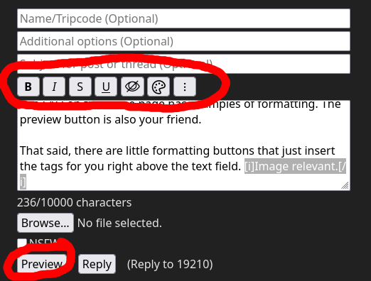 That said, there are little formatting buttons right above the text field that just insert the tags for you. Image relevant.