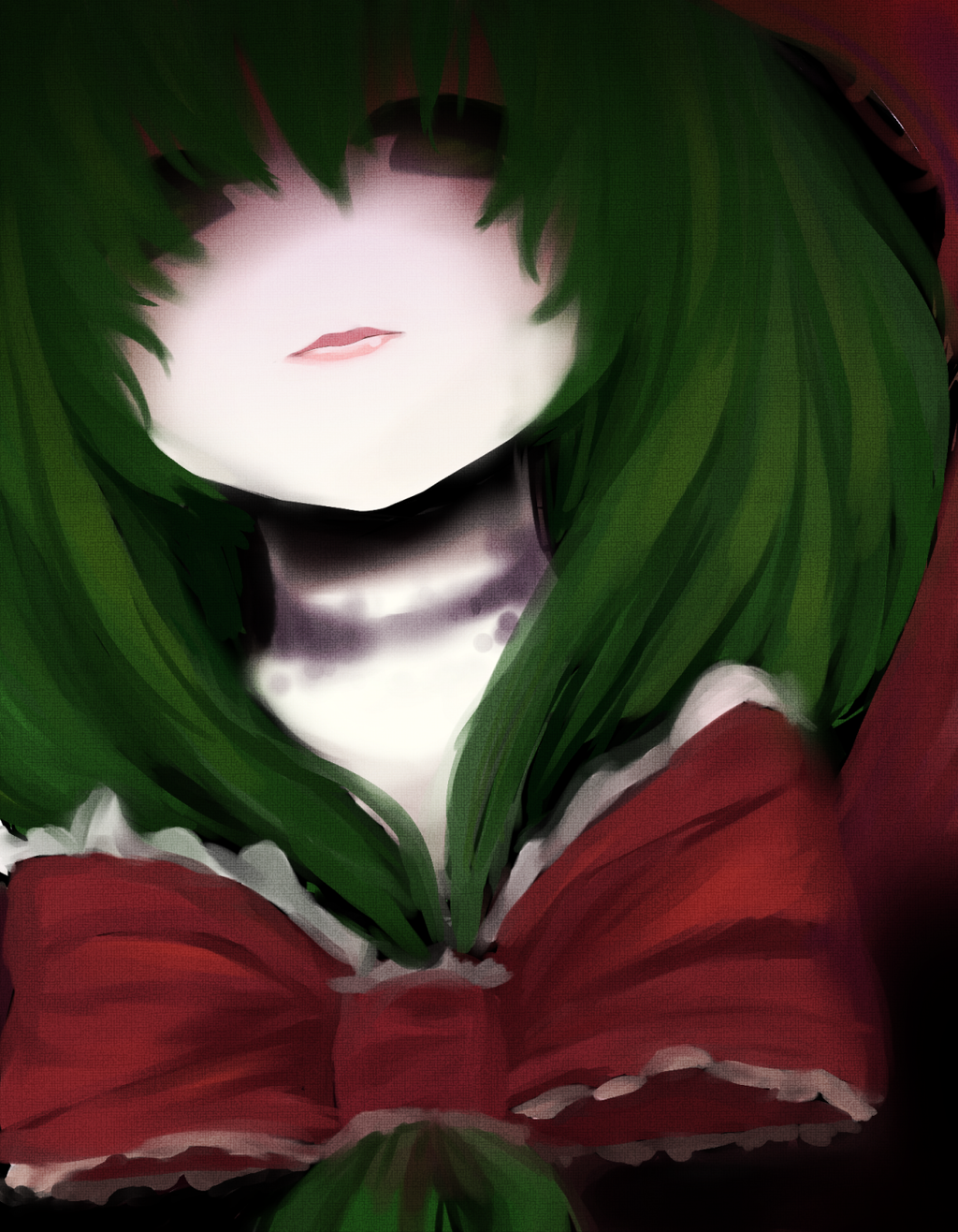 When I look back to Miss Kagiyama, she’s already started spinning. It’s slow and feeble, more of a shuffle than anything, but she’s definitely spinning. That sickening feeling immediately roots itself in the core of my being once more. I’m just an ordinary human with ordinary senses, but even I can see the black mist that begins spiraling around Miss Kagiyama. The lightbulb above us starts flickering and sparking, creating an effect like a strobe light that only adds to the nausea that’s gathering in my stomach. Something like static spreads in the air, making all my hairs stand on end. The alternating flashes of light and gloom bring the garish quilts on the walls to life as torn skin and demonic faces. The floor vibrates and rumbles but I’m the only shaking, and I realize that I can no longer tell the difference between my perception and reality. Miss Kagiyama keeps crying and seems farther and farther away with each spin she makes. Every single inch of my body pleads with me to grab Mori and run away from this. But how many people have done the same? Probably all of them, eventually. So when does it end for Miss Kagiyama? When she snaps and decides to unleash all this power on everyone, becoming the next monster someone has to put down? Or when she becomes so alone that one day she is simply forgotten even by Gensokyo and fades away entirely?