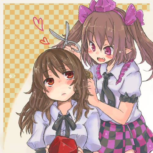 “A bit rude, don’t you think?” Shameimaru said with her eyes closed. Her pointed ears twitched as if to brag of her hellish tengu hearing. The firm motion of my fingers on her scalp brought a soft noise of contentment, and her ears gave a jump. “There’s nothing wrong with being happy. Especially when it involves touching an attractive young woman’s hair.”