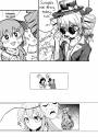 Minamitsu frowns, and glances back and forth. She looks at me. What, dude? “Hey...” she whispers.
