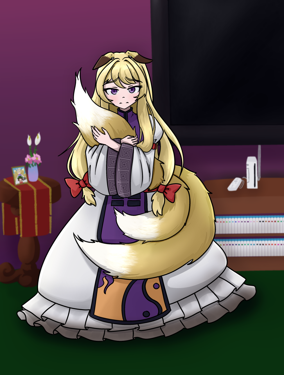 She tripped over her feet still trying to scramble backwards, trying desperately to steady her breath. Her vision swam, trying to reconcile the Yukari she knew with the one in front of her. The smug aloofness shattered into meek sincerity. The immaculate poise and grace, marred by matted tails dragging behind her. It was wrong, all wrong. She wasn’t calm, or confident, or three steps ahead, or gently teasing or mysterious or any of the things Yukari should be!
