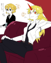 A knock on the door tears you away from your glaring at your watch, and the door opens, revealing a radiant beauty. You'd never tell her that, of course, but her red hair, red eyes, and just the way she carries herself, and the black pantyhose she wears with that skirt- okay, you should stop ogling and get to greeting. “Kotohime.”